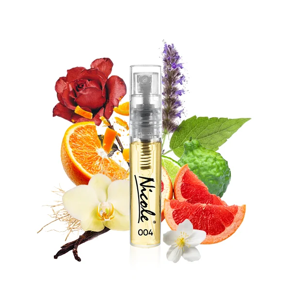 Nicole 004 to kwiatowy, szyprowy, świeży, a zarazem orientalny zapach stworzony dla kobiety pewnej siebie oraz kobiety sukcesu. Lekki perfum o subtelnym i pełnym klasy zapachu. Z pewnością doda śmiałości i zdecydowania. Wyjątkowa woń dla nowoczesnej kobiety, której zmysłowość uzupełnia się z sukcesem. Elegancki i subtelny zapach, w którym jest sporo klasy. To świetna propozycja na co dzień, kiedy nie chcemy wyróżniać się z tłumu, ale zależy nam na elegancji.