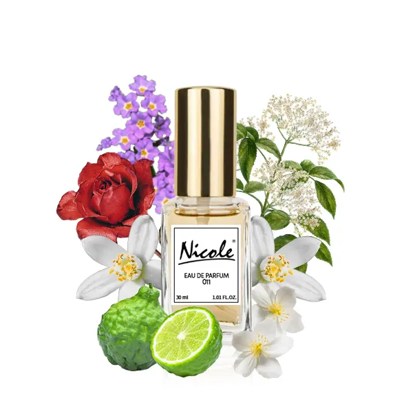 Nicole 011 mieni się w tonacji kwiatowej, z wyczuwalną nutą kwiatu pomarańczy i mandarynki, ambry i jaśminu. Kojarzy się z sukcesem i młodością. Ponadczasowy zapach. Połączono w nim esencje kwiatów, drzewa i piżma. Zapach przepełniony młodością i sukcesem. Kwiatowa esencja w połączeniu z aldehydowymi nutami tworzy piękny klasyczny zapach. Idealny perfum dla ambitnej kobiety, która zna swoją wartość.
