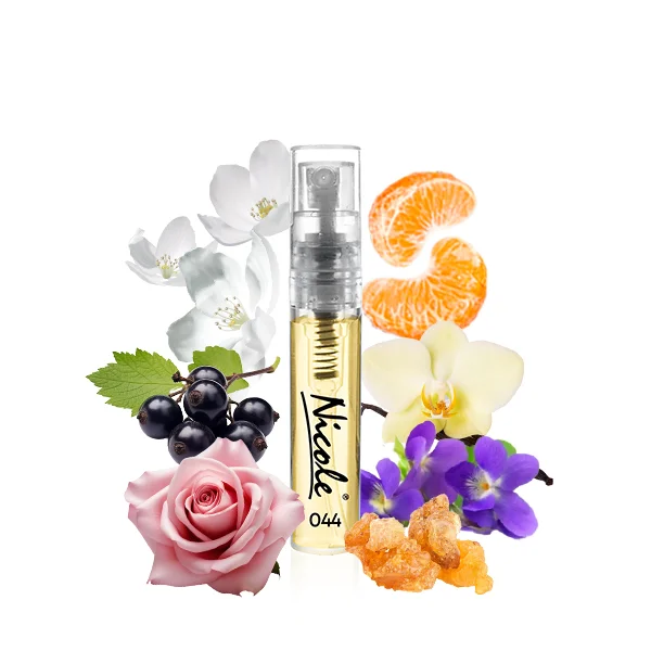 Nicole 044 to orientalna, kwiatowa kompozycja dla kobiet, z grupy ciężkich, odznaczający się wyjątkową trwałością. Świetnie się rozwija na ciele w miarę upływu czasu. Idealny perfum dla zdecydowanej, dojrzałej kobiety. Niebanalny i wspaniały zapach, który jest połączeniem wielkomiejskiego stylu z pięknem natury.