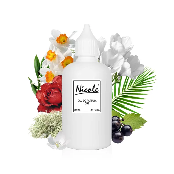 Nicole 052 to elektryzujący zapach dla kobiet, który jednocześnie promieniuje i kusi. Świeży i lekki oparty na esencji piżma, czarnej porzeczki i mchu dębu. Wibrujący i seksowny aromat kwiatowo-drzewno-piżmowych perfum dla kobiet. To zaproszenie by odkrywać nieznane, spełniać marzenia, który uzależnia jak narkotyk. Połączenie ekscytacji i harmonii przygotowane dla kobiet z dużym poczuciem pewności siebie, które wiedzą czego chcą. Będzie on również pasował kobietom, które sięgają ciągle po więcej, stawiają sobie coraz większe cele i wyzwania. Zapach sprawdzi się dla kobiet aktywnych, delikatnych i zmysłowych. To perfumy dla nietuzinkowych i oryginalnych, wyjątkowych kobiet niezależnie od wieku.