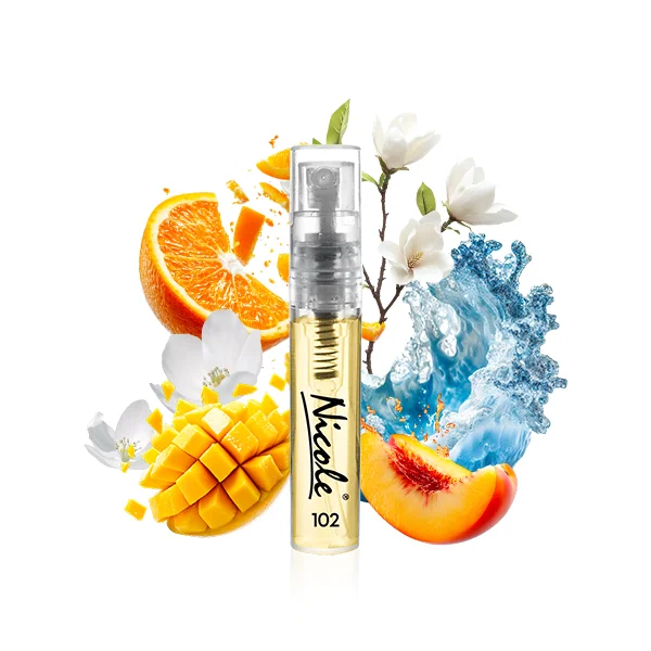 Nicole 102 to słodka woń kwiatów i owoców wsparta drzewnym aromatem. Te perfumy dla kobiet inspirowane są wyjątkowymi i egzotycznymi wyspami Karaibskimi. Przyjemny zapach, który kusi zmysły i zaprasza do letniego flirtu. Nicole 102 pozwolą Ci się poczuć niezwykle atrakcyjnie i kobieco. Z Nicole 102 delektuj się białymi, niekończącymi się plażami, świeżym morskim powietrzem i mieniącym się oceanem.