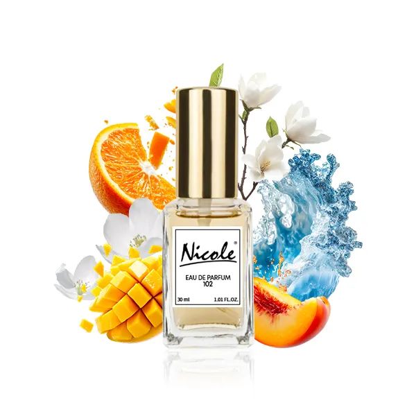 Nicole 102 to słodka woń kwiatów i owoców wsparta drzewnym aromatem. Te perfumy dla kobiet inspirowane są wyjątkowymi i egzotycznymi wyspami Karaibskimi. Przyjemny zapach, który kusi zmysły i zaprasza do letniego flirtu. Nicole 102 pozwolą Ci się poczuć niezwykle atrakcyjnie i kobieco. Z Nicole 102 delektuj się białymi, niekończącymi się plażami, świeżym morskim powietrzem i mieniącym się oceanem.