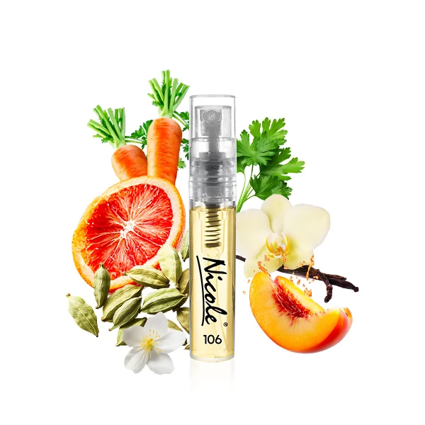 Nicole 106 odznacza się niezwykłą świeżością. To propozycja wyjątkowego zapachu dla naturalnych i figlarnych. Ociekająca optymizmem i zmysłowością kompozycja kwiatowo-owocowa. Doskonale podkreśli charakter i osobowość naturalnych, powabnych, ciekawych świata i zwariowanych kobiet. To idealna propozycja dla dynamicznej, spontanicznej i pozytywnie nastawionej kobiety. Rześki, świeży czarujący ciepłem i słodyczą zapach natchniony kobiecą witalnością.