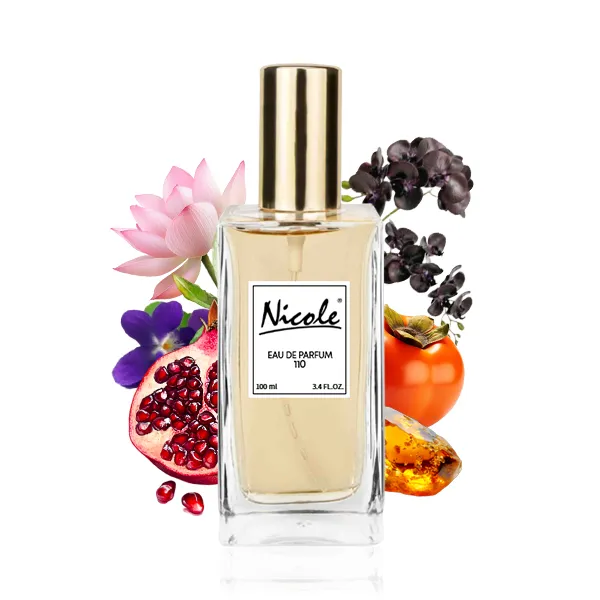 Nicole 110 to wyjątkowa orientalna kompozycja z domieszką kwiatów. Zapach przywodzi na myśl tajemniczość i egzotykę, a podstawą do jego powstania stanowiła fascynacja tym, co nieznane oraz mistyka orientu. Nicole 110 to zapach niezwykle uniwersalny, który idealnie prezentuje się na co dzień, jak i do najbardziej eleganckiej okazji. Perfumy powstały z myślą o eleganckich, odważnych i lubiących przygody. To połączenie oryginalności, osobowości i pasji, która zaprasza mężczyzn w nieznaną przygodę. Jasna i pociągająca kompozycja, seksownie działająca na wyobraźnie.