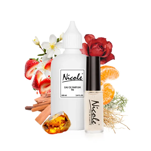 Nicole 116 – 100ml FB to FILLER Nicole wraz z pustą szklaną buteleczką. Filler Nicole to innowacyjne, ekonomiczne i wygodne rozwiązanie, ponieważ dzięki precyzyjnej końcówce pozwala na szybkie przelanie perfum Nicole do buteleczki.
