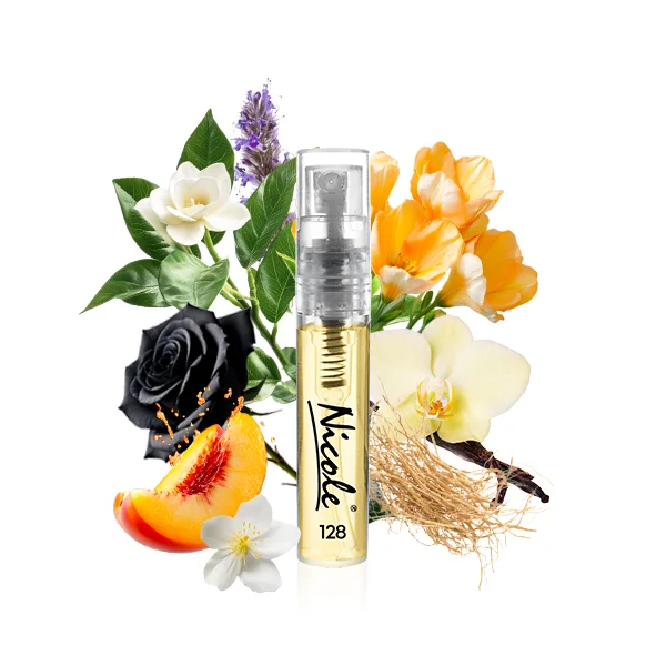 Nicole 128 to kwiatowa, drzewna i niezwykle orientalna kompozycja perfum dla kobiet. Tajemniczy zapach, który skradnie serca swą upojną kompozycją, wywołującą przyjemne uczucie. To nowoczesna, ponadczasowa i proponująca nowy styl kompozycja zapachowa, która jest dedykowana kobietom w różnym wieku, łączy zamiłowanie do wysokiej jakości i oryginalności. Jest to idealna propozycja dla kobiet, które wiedzą, czego chcą i nie boją się okazywać swoich uczuć i wyrażać myśli.