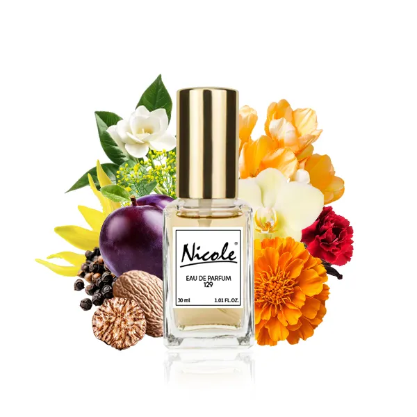 Nicole 129 z wyczuwalnymi akordami drzewa i piżma to przyjemny ciepły i kwiecisto drzewny zapach dla kobiet, który kryje w sobie tony oregano, kolendry wraz z gałką muszkatołową, goździkiem, eleganckim i stylowym ylang-ylang oraz różą, piżmem i wanilią. Wyjątkowy zapach perfum sprawia, że aromat kwiatów przyjemnie rozkwita, a w połączeniu ze słodkimi, drzewnymi i korzennymi akordami pozwala współbrzmieć niesamowitej woni. Nicole 129 jest wyrazem doskonałej harmonii, wszystkie składniki są bardzo dobrze wyważone. To klasyczna, ponadczasowa, gustowna i elegancka kompozycja zapachu, która idealnie sprawdzi się jako ozdoba dla wyrafinowanej kobiety. Kobiecość miesza się tutaj z tym przyjemnie ciepłym i nieprzesadnie słodkim, upojnym zapachem. Zapach raczej polecany na wieczór.