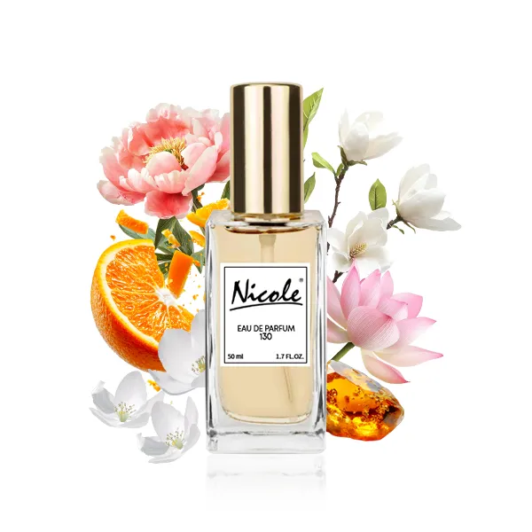 Nicole 130 to wyjątkowe kwiatowe perfumy. Delikatne i przyjemne perfumy z pewnością zachwycą każdą z was. Nicole 130 wyjątkową woń nadają esencje owoców cytrusowych, które początkowo są świeże, następnie stają się słodszą wonią wspartą akordami piwonii i magnolii. Dodatkowo słodycz podkreślona jest akordami kwiatu lotosu. To subtelny, łagodny i czysty, ale przy tym jest bardzo kobiecy i zmysłowy zapach. Z pewnością bardziej pasuje on na letnie dni. Perfumy Nicole 130 to kompozycja zapachowa, która pasuje do każdej kobiety, bez względu na jej ubiór, profesję i preferencje.