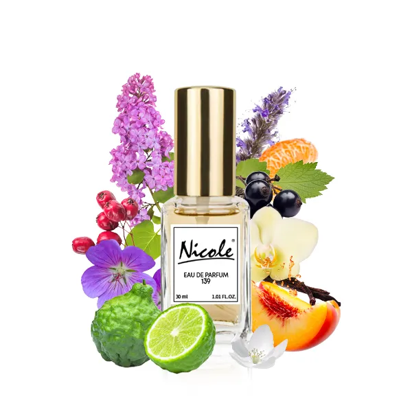 Nicole 139 to orientalno – kwiatowe perfumy dla kobiet. Zmysłowy zapach polecany dla nowoczesnych kobiet, które chcą odnosić sukcesy. Perfumy te prowokują i wywodzą się z namiętnego serca oraz uosabiają kobiecą zmysłowość. Nicole 139 doskonale ozdobi śmiałe, odważne i seksowne dziewczyny i kobiety, które lubią bawić się życiem.