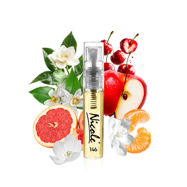 Nicole 146 zapach wypełniony esencjami kwiatowo – owocowymi. Zapach jest zaproszeniem do bajecznego i magicznego świata. Podstawą, w pełni definiującą tę markę jest kobiecość, wyrafinowanie i romantyzm.