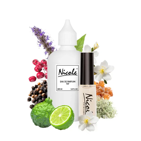 Nicole 147 to propozycja luksusowych szyprowo – kwiatowych i skórzanych perfum dla kobiet. Zapach jest alegorią miękkości i zmysłowości dobrej jakości produktów skórzanych. Ta skórzano – kwiatowo – szyprowa kompozycja zapachowa jest połączeniem esencji bergamotki i różowego pieprzu, jaśminu, paczuli, mchu dębowego i skóry. Ten subtelny i gustowny zapach Nicole 147 jest połączeniem krajobrazu weneckiego przedmieścia, ziemi i drzew, świeżo skoszonego siana z lekką wonią skóry.