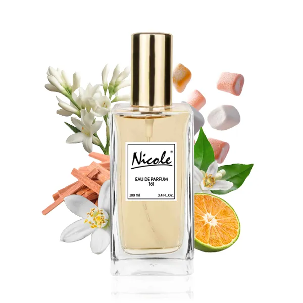 Nicole 161 to połączenie z odpowiednio wyważonych esencji orientalnych i kwiatowych perfumy dla kobiet. Nicole 161 w górze zapachu rozbrzmiewa kompozycją złożoną z nut zielonej mandarynki oraz neroli. Serce tej kompozycji zapachowej kusi kwiatem pomarańczy i tuberozą. Podstawę zapachu stanowi pianka marshmallow z drzewem sandałowym. Kontrastowy zapach, którym może uzależniać swoim aromatem. Zapach pełen orientalno-kwiatowych nut, które podkreślają namiętność, zmysłowość. Kobieta ubrana w Nicole 161 zwraca na siebie uwagę i intryguje.