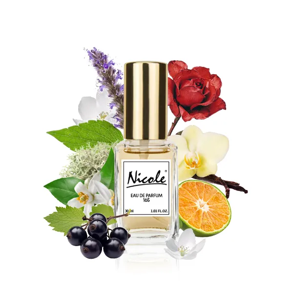 Nicole 165 to połączenie esencji kwiatowo-szyprowych. Ten zapach jest ukłonem ku nowoczesnej kobiecie, która łączy w sobie naturalne piękno, przebojowość i wolność. W głowie zapachu dominuje liść czarnej porzeczki. Serce tej esencji zapachowej tworzą róża i frezja. Bazą dla zapachu są nuty drzewne wsparte ambroxanem, wanilią i paczulą. Esencje, urok i charyzma tego zapachu działają na innych magnes. To propozycja perfum dla kobiet silnych, niezależnie od sytuacji oraz niezależnych dam. Perfumy zostały zainspirowane emocjami, beztroską i uczuciami namiętności. Nicole 165 to niezwykły zapach, który idealnie pasuje do pełnych wrażliwości perfum. W perfumy te możesz ubierać się każdego dnia. Zapach podkreśla kobiece atuty.
