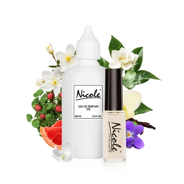 Nicole 173 to połączenie esencji kwiatów, drzew wsparte piżmem. Nicole 173 jest połączeniem słodkich owoców z brzmiącymi różnymi tonami kwiatami. Zapach doskonale nadaje się jako otulająca woń w trakcie letnich i wiosennych miesięcy. Delikatny, pełen optymizmu i energii zapach pasuje dla kobiet i dziewcząt. Pozwoli poczuć się niewinnie, młodo oraz doda radości życia. Młodsze Panie, które go noszą podkreślą poprzez ten zapach swoją figlarność, radość i niewinność.
