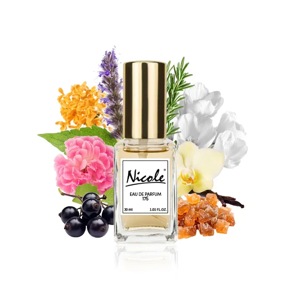 Nicole 175 są propozycją damskiego zapachu o woni kwiatowej, szyprowej. Zapach oczaruje odważne i pewne siebie kobiety. Góra perfum obfituje w esencje owocu i liści czarnej porzeczki, bergamotki, frezji i mandarynki. W sercu zapachu wybrzmiewa symfonia esencji neroli, róży, osmanthusa wsparte esencją dzięgla. Podstawę tej kompozycji tworzą akordy ambroxanu, paczuli i wanilii doprawione drzewnymi esencjami. Zapach ozdobi kobiety odważne, z dużym poczuciem wartości oraz wybierających nowoczesny styl, dodatkowo uwypuklając ich zalety. Nicole 175 został stworzony z myślą o kobietach, które mają odwagę podejmować ryzyko.