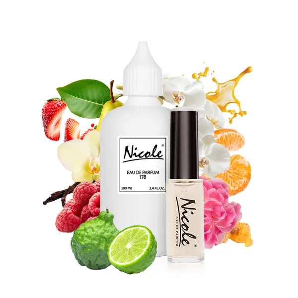 Nicole 178 – 100ml FB to FILLER Nicole wraz z pustą szklaną buteleczką. Filler Nicole to innowacyjne, ekonomiczne i wygodne rozwiązanie, ponieważ dzięki precyzyjnej końcówce pozwala na szybkie przelanie perfum Nicole do buteleczki.