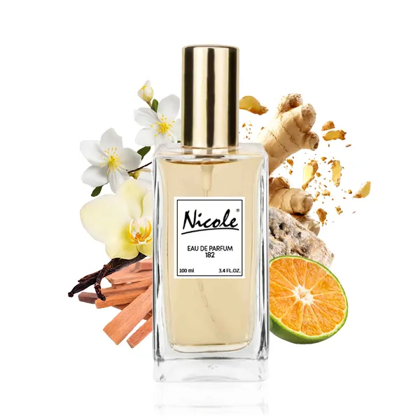 Nicole 182 to orientalno – kwiatowa propozycja zapachu dla kobiet. Ta aromatyczna woń w górze zapachu kusi esencjami jaśminu wodnego, kwiatu imbiru oraz zielonej mandarynki. W sercu Nicole 182 współgra wanilia i sól. Podstawę tej kompozycji zapachowej tworzą drzewo kaszmirowe z sandałowym. Słodki, zmysłowy i kobiecy zapach, który magnetyzuje i uzależnia.