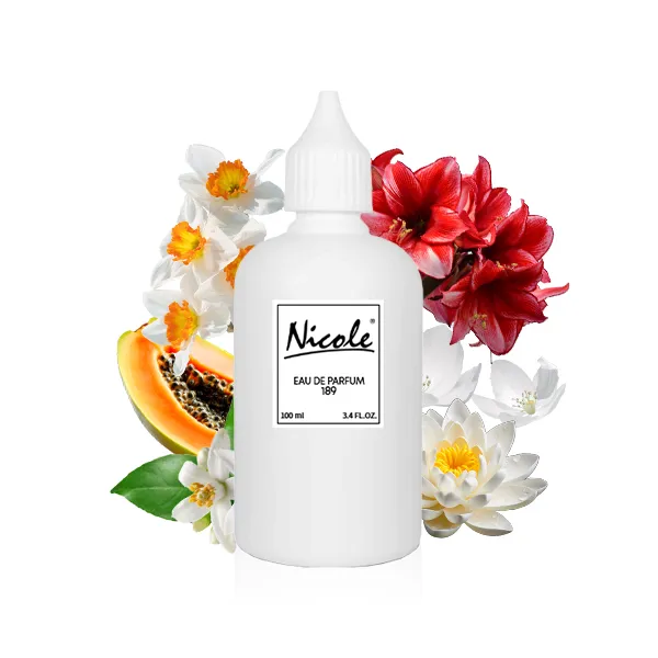Nicole 189 to kwiatowa kompozycja dla pań. W górze zapachu dominuje kwiat papai i neroli. Serce rozbrzmiewa akordami zwartnicy, narcyza i lilii wodnej. W podstawie znajduje się piżmo i drewno kaszmirowe. Inspiracją tej kompozycji zapachowej stała się wypełniona emocjami podróż przez Sycylię. Świeży i subtelny zapach kryje w sobie szlachetność, radość i elegancję.