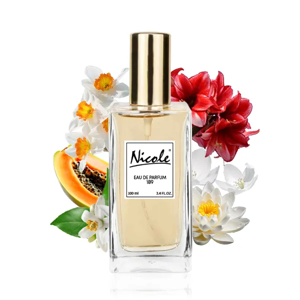Nicole 189 to kwiatowa kompozycja dla pań. W górze zapachu dominuje kwiat papai i neroli. Serce rozbrzmiewa akordami zwartnicy, narcyza i lilii wodnej. W podstawie znajduje się piżmo i drewno kaszmirowe. Inspiracją tej kompozycji zapachowej stała się wypełniona emocjami podróż przez Sycylię. Świeży i subtelny zapach kryje w sobie szlachetność, radość i elegancję.