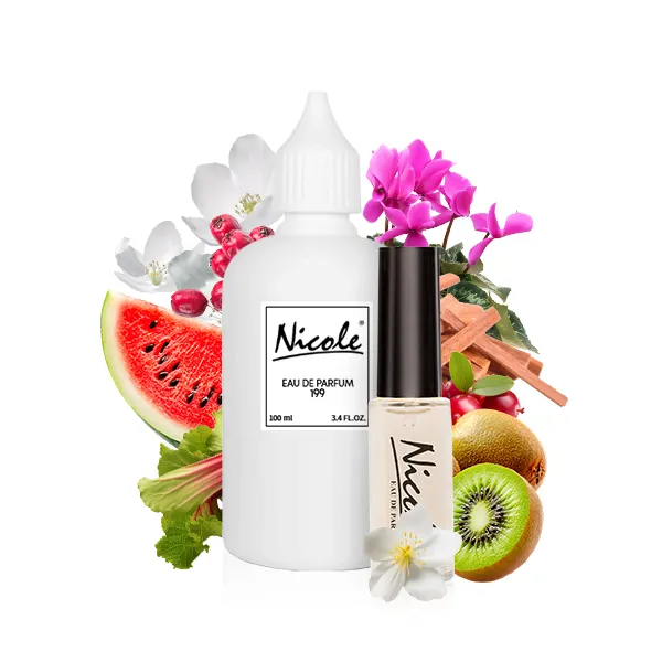 Nicole 199 to kwiatowo-wodne perfumy dla kobiet. Nutami głowy są kiwi, rabarbar i różowy pieprz. Nutami serca są cyklamen, jaśmin i arbuz. Nutami bazy są drzewo cytrynowe, drzewo sandałowe i piżmo. To perfumy dla nowoczesnych i wyemancypowanych kobiet.