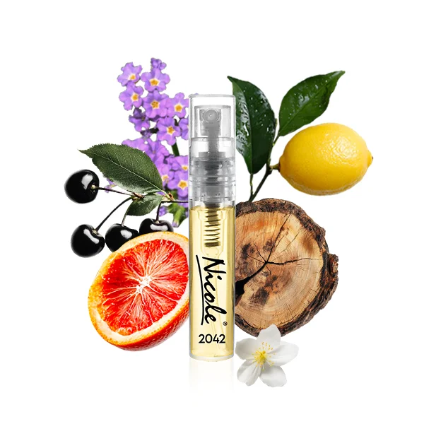 Nicole 2042 należy do kategorii zapachów owocowo-drzewno-aromatycznych.To pełna królewskiej aury kompozycja, która łączy energetyczną świeżość cytrusów z soczystą nutą wiśni i ciepłem piżmowo-drzewnej bazy. Już pierwsze nuty zachwycają orzeźwiającym połączeniem sycylijskiej cytryny i czerwonej pomarańczy, które dodają lekkości i blasku. W sercu kompozycji króluje słodka, uwodzicielska wiśnia, przełamana nutą heliotropu i jaśminu, które podkreślają kobiecą zmysłowość. Drzewna baza z piżmem i cedrem nadaje całości trwałości oraz eleganckiej głębi. Nicole 2042 to zapach dla nowoczesnej królowej – pewnej siebie, charyzmatycznej i wyjątkowej.