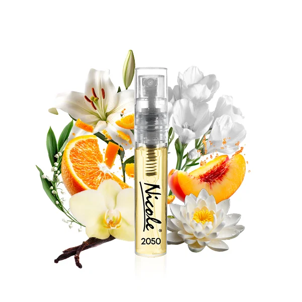 Nicole 2050 należy do kategorii zapachów kwiatowo-owocowych z subtelnymi, drzewnymi akcentami.To kompozycja, która łączy w sobie świeżość i zmysłowość, tworząc harmonijną aurę kobiecej pewności siebie. Otwarcie zapachu to soczyste nuty pomarańczy, bluszczu i lilii wodnej, które wprowadzają w świat delikatnej elegancji. Serce perfum pulsuje aromatem brzoskwini, frezji i konwalii, nadając całości romantycznego charakteru. Bazę stanowią ciepłe akordy wanilii, piżma i cedru, które otulają skórę subtelnym, uwodzicielskim woalem. Nicole 2050 to zapach dla kobiet, które pragną podkreślić swoją indywidualność i kobiecość w każdej sytuacji.