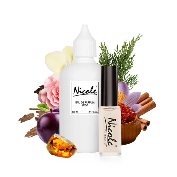 Nicole 2053 to wyjątkowe kwiatowe, owocowe perfumy typu unisex, ale bardziej skierowane do kobiecej natury. Jeśli zastanawiacie się, które perfumy oddają zapach luksusu, to Nicole 2053 stanowi odpowiedź. Przepyszna dymna śliwka w szafranowo-korzennej otoczce na waniliowo-agarowym podbiciu, gdzieniegdzie przemyka zielona ostrość kocanki. Nicole 2053 to złożony i wyrafinowany zapach, idealny na specjalne okazje. To także doskonała propozycja dla miłośników zapachu śliwek.