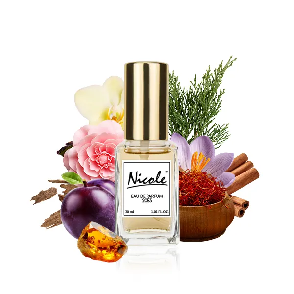 Nicole 2053 to wyjątkowe kwiatowe, owocowe perfumy typu unisex, ale bardziej skierowane do kobiecej natury. Jeśli zastanawiacie się, które perfumy oddają zapach luksusu, to Nicole 2053 stanowi odpowiedź. Przepyszna dymna śliwka w szafranowo-korzennej otoczce na waniliowo-agarowym podbiciu, gdzieniegdzie przemyka zielona ostrość kocanki. Nicole 2053 to złożony i wyrafinowany zapach, idealny na specjalne okazje. To także doskonała propozycja dla miłośników zapachu śliwek.