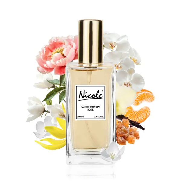 Nicole 2055 należy do kategorii zapachów orientalno-kwiatowych z wyraźną nutą piżmową.Ten zapach otwiera się soczystą klementynką, która wprowadza świeżość i lekkość. W sercu kompozycji rozkwitają zmysłowe nuty magnolii, ylang-ylang i piwonii, tworząc kwiatowy bukiet pełen delikatności i wdzięku. Bazę stanowią ciepłe akordy wanilii, białego piżma i żywicy benzoesowej, które otulają skórę kremową miękkością i pozostawiają trwały, subtelny ślad.