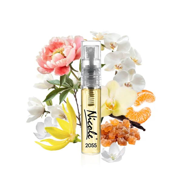 Nicole 2055 należy do kategorii zapachów orientalno-kwiatowych z wyraźną nutą piżmową.Ten zapach otwiera się soczystą klementynką, która wprowadza świeżość i lekkość. W sercu kompozycji rozkwitają zmysłowe nuty magnolii, ylang-ylang i piwonii, tworząc kwiatowy bukiet pełen delikatności i wdzięku. Bazę stanowią ciepłe akordy wanilii, białego piżma i żywicy benzoesowej, które otulają skórę kremową miękkością i pozostawiają trwały, subtelny ślad.