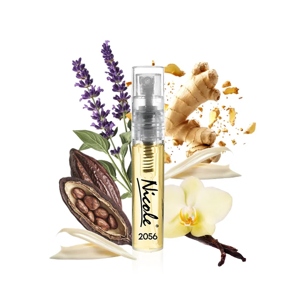 Nicole 2056 należy do kategorii zapachów orientalno-waniliowych z gourmandowym akcentem. Ten zapach to zmysłowa podróż przez trzy oblicza wanilii z Madagaskaru: waniliową infuzję o drzewnym charakterze, kawior waniliowy o bogatej słodyczy oraz waniliowy absolut z mleczną głębią. Kompozycję dopełnia świeża lawenda z Prowansji, nadając całości aromatycznej lekkości.