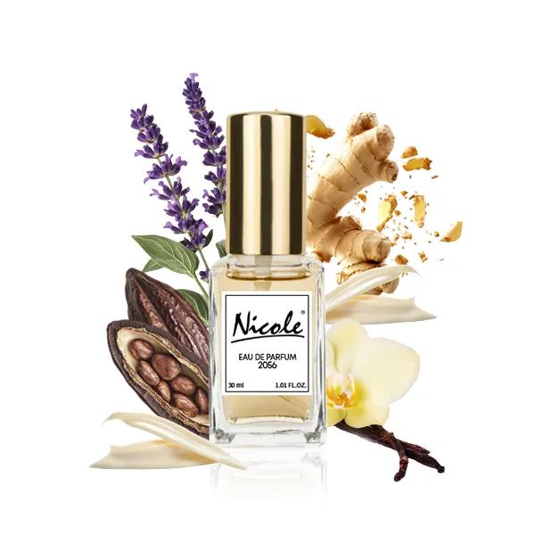 Nicole 2056 należy do kategorii zapachów orientalno-waniliowych z gourmandowym akcentem. Ten zapach to zmysłowa podróż przez trzy oblicza wanilii z Madagaskaru: waniliową infuzję o drzewnym charakterze, kawior waniliowy o bogatej słodyczy oraz waniliowy absolut z mleczną głębią. Kompozycję dopełnia świeża lawenda z Prowansji, nadając całości aromatycznej lekkości.