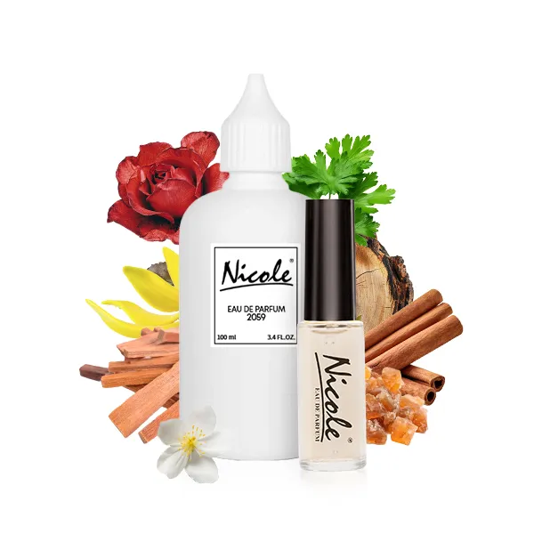 Nicole 2059 należy do kategorii zapachów drzewno-orientalnych. To zmysłowa kompozycja, która celebruje hipnotyzującą moc sandałowca, otulając skórę aksamitnym ciepłem i egzotycznymi przyprawami. W otwarciu wyczuwalne są nuty przyprawowe, w tym cynamon i kmin, które nadają zapachowi pikantnego charakteru. Serce kompozycji tworzą kwiatowe akordy ylang-ylang, jaśminu i róży, wprowadzając delikatność i elegancję. Baza oparta na sandałowcu, benzoesie i piżmie zapewnia głębię i trwałość, pozostawiając zmysłowy ślad na skórze. Nicole 2059 to zapach dla kobiet poszukujących wyrafinowanej, ale subtelnej kompozycji, idealnej na wieczorne wyjścia i specjalne okazje.