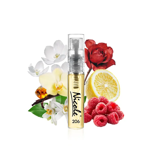 Nicole 206 to kwiatowe perfumy dla kobiet. Ten zapach cenią kobiety odważne, dynamiczne i mocno stąpające po ziemi.