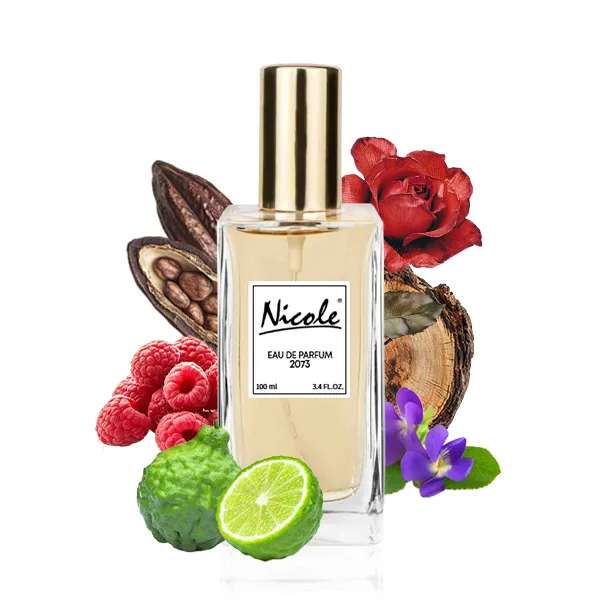 Nicole 2073 należy do kategorii zapachów kwiatowo-drzewnych z gourmandowym akcentem. To zapach, który otula zmysły aksamitną słodyczą i głęboką elegancją. Już pierwsze nuty – soczysta malina, świeża bergamotka i dojrzała gruszka – wprowadzają w świat zmysłowej przyjemności. W sercu kompozycji rozkwita duet fiołka i róży, tworząc kwiatowy bukiet o niezwykłej głębi. Bazę stanowią intensywne akordy kakao, zamszu i drzewa cedrowego, które nadają zapachowi ciepła i trwałości.