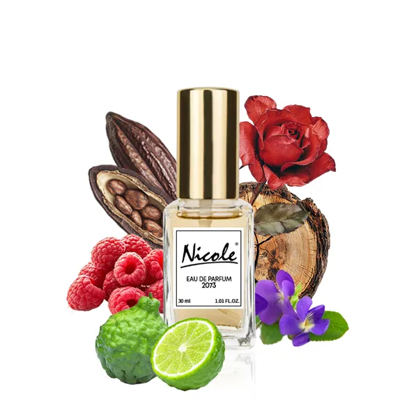 Nicole 2073 należy do kategorii zapachów kwiatowo-drzewnych z gourmandowym akcentem. To zapach, który otula zmysły aksamitną słodyczą i głęboką elegancją. Już pierwsze nuty – soczysta malina, świeża bergamotka i dojrzała gruszka – wprowadzają w świat zmysłowej przyjemności. W sercu kompozycji rozkwita duet fiołka i róży, tworząc kwiatowy bukiet o niezwykłej głębi. Bazę stanowią intensywne akordy kakao, zamszu i drzewa cedrowego, które nadają zapachowi ciepła i trwałości.