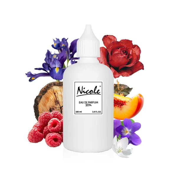 Nicole 2074to kwiatowy zapach dla kobiet. Nutami głowy są czerwone owoce, malina, róża, fiołek i brzoskwinia; nutami serca są pelargonia różana i irys; nutami bazy są białe piżmo i cedr.