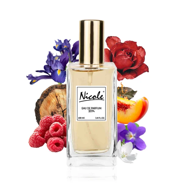 Nicole 2074 to kwiatowy zapach dla kobiet. Nutami głowy są czerwone owoce, malina, róża, fiołek i brzoskwinia; nutami serca są pelargonia różana i irys; nutami bazy są białe piżmo i cedr.