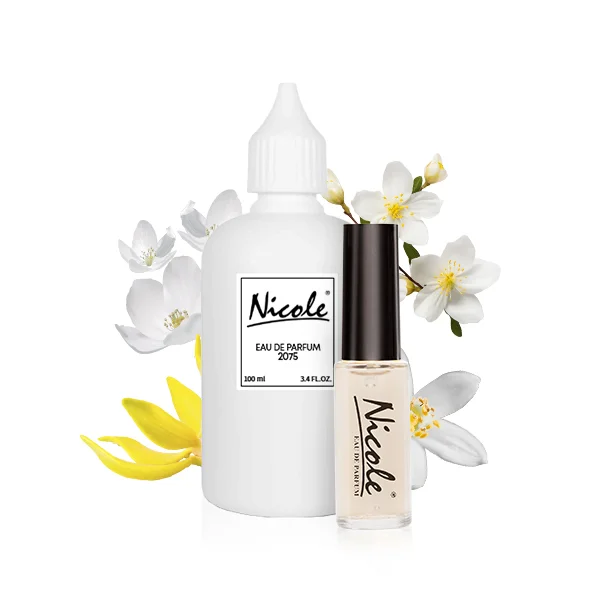 Nicole 2075 należy do kategorii zapachów kwiatowo‑drzewno‑piżmowych dla kobiet. To zapach, który otwiera się czystym, niemal eterycznym piżmem – subtelnym, obiecującym intymność i bliskość. W sercu rozkwitają białe kwiaty: jaśmin, neroli i ylang‑ylang, o delikatnej aurze peelingu… prawdziwej czystości. Baza zaś łączy cashmeran – miękkie drewno otulone pudrową strukturą – zmysłowo podkreślające całość jak aksamitna mgiełka. Całość jest jak dotyk jedwabistej pościeli na skórze – czysta, zmysłowa i trwale pamiętna.