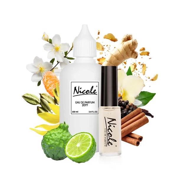 Nicole 2077 należy do kategorii zapachów kwiatowo‑przyprawowych dla kobiet. To kompozycja drenująca jak czerwona szminka — otwiera się eksplozją bergamotki i mandarynki spiętych świeżością imbiru, kardamonu, cynamonu i pieprzu, które wprowadzają intensywność i ciepło.