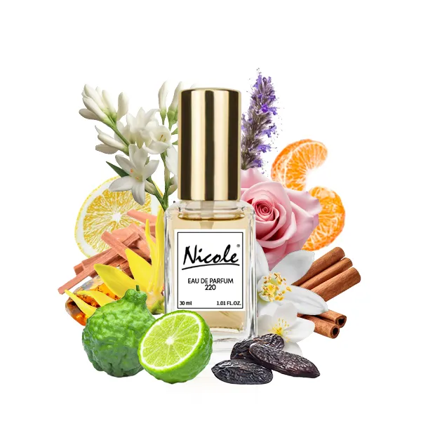 Nicole 220 to orientalno-kwiatowe perfumy dla kobiet. Cudne, kobiece perfumy Nicole 220 otulają aromatem niezwykłych kwiatów i drzew, a równoważą owocami cytrusowymi.