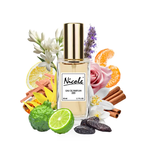 Nicole 220 to orientalno-kwiatowe perfumy dla kobiet. Cudne, kobiece perfumy Nicole 220 otulają aromatem niezwykłych kwiatów i drzew, a równoważą owocami cytrusowymi.