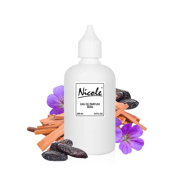 Nicole 3034 należy do kategorii zapachów orientalno-drzewnych. Ten zapach to wyrafinowana kompozycja, w której dominują słodkie i pikantne akordy, tworząc aurę uwodzicielskiej elegancji. W nucie głowy wyczuwalny jest aromatyczny geranium, który wprowadza świeżość i lekkość. Serce perfum wypełnia kremowa tonka, nadając całości głębi i słodyczy. Bazę stanowi ciepłe drzewo sandałowe, otulające skórę aksamitnym, zmysłowym woalem. Nicole 3034 to zapach o wyraźnej projekcji i długotrwałej trwałości, idealny na wieczorne wyjścia i chłodniejsze dni.