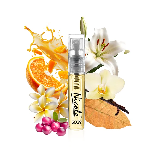 Nicole 3039 to orientalno – kwiatowe perfumy dla kobiet i mężczyzn (unisex). Został wydany w 2017 roku. Nicole 3039 jest słonecznym, kwiatowo-orientalnym i totalnie uzależniającym zapachem! Soczyste i słodkie różowe jagody zmieszano w otwarciu z karmelem i nutą gorzkiej pomarańczy. Kontrastowy początek szybko prowadzi do serca, w którym rządzi biała, hipnotyczna tuberoza, otulona w zmysłowy aromat lilii i waniliowej orchidei. Czar zapachu wzmacnia paczulowa baza z egzotyczny akordem olejku monoi.