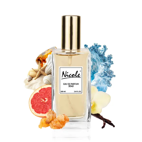 Nicole 3040 należy do kategorii zapachów fougère z wyraźnym akcentem drzewno-ambrowym. Ten zapach to połączenie nowoczesności i natury, inspirowane technologiczną precyzją oraz siłą oceanu. Otwarcie kompozycji to świeży i energetyzujący grejpfrut, który wprowadza w świat morskiej bryzy. Serce zapachu wypełnia kadzidło, nadając mu głębi i tajemniczości. Bazę stanowi słodka wanilia w towarzystwie innowacyjnej molekuły AmberXtreme™, która zapewnia długotrwałość i intensywność aromatu.