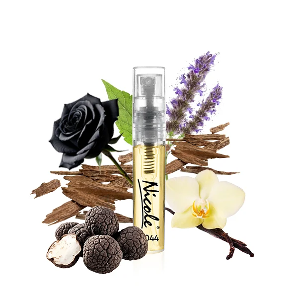 Nicole 3044 należy do kategorii zapachów orientalno-drzewnych. To zmysłowa kompozycja, w której głębokie, kobiece kwiaty łączą się z męską ziemistością czarnej trufli, wanilii, paczuli i drewna oud, tworząc intensywną, sensualną aurę. Otwarcie zapachu emanuje nutami szafranu, wprowadzając w świat pełen tajemniczości i luksusu. Serce kompozycji skrywa aromatyczne nuty czarnej róży i czarnej trufli, oddając esencję zmysłowości i głębi. Baza z paczuli, drewna oud, wanilii i mchu dębowego nadaje zapachowi trwałości i wyrafinowania, tworząc elegancką aurę. Nicole 3044 to zapach dla osób poszukujących unikalnych, intensywnych doznań olfaktorycznych, które pozostają w pamięci na długo.