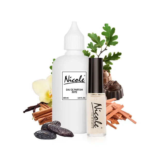 Nicole 3072 należy do kategorii zapachów orientalno-waniliowych.To wyjątkowa kompozycja, która łączy w sobie bogactwo koniaku z ciepłem przypraw i słodyczą deserowych nut, tworząc zapach pełen elegancji i wyrafinowania. Otwarcie zachwyca nutą koniaku, wprowadzając w świat luksusu i zmysłowości. Serce kompozycji skrywa aromatyczne nuty cynamonu, fasoli tonka i dębu, oddając esencję głębi i intensywności. Baza z praliny, wanilii i drzewa sandałowego nadaje zapachowi słodyczy i trwałości, tworząc wyrafinowaną aurę. Nicole 3072 to zapach dla osób poszukujących unikalnych, intensywnych doznań olfaktorycznych, które pozostają w pamięci na długo.