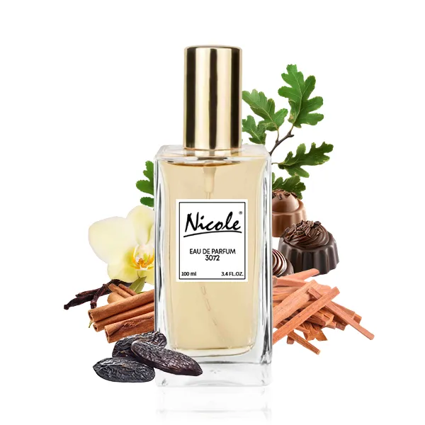 Nicole 3072 należy do kategorii zapachów orientalno-waniliowych.To wyjątkowa kompozycja, która łączy w sobie bogactwo koniaku z ciepłem przypraw i słodyczą deserowych nut, tworząc zapach pełen elegancji i wyrafinowania. Otwarcie zachwyca nutą koniaku, wprowadzając w świat luksusu i zmysłowości. Serce kompozycji skrywa aromatyczne nuty cynamonu, fasoli tonka i dębu, oddając esencję głębi i intensywności. Baza z praliny, wanilii i drzewa sandałowego nadaje zapachowi słodyczy i trwałości, tworząc wyrafinowaną aurę. Nicole 3072 to zapach dla osób poszukujących unikalnych, intensywnych doznań olfaktorycznych, które pozostają w pamięci na długo.
