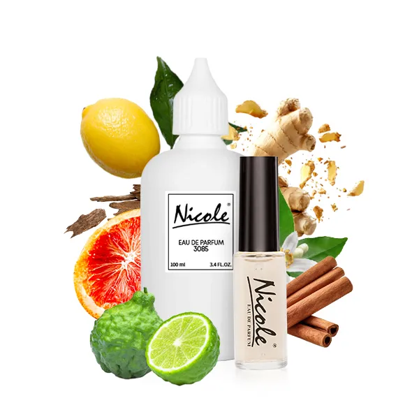 Nicole 3085 należy do kategorii zapachów cytrusowo-aromatycznych. Otwarcie zapachu to eksplozja cytrusów: cytron, kalabryjska bergamotka i sycylijska pomarańcza tworzą energetyzujące preludium. W sercu perfum rozkwita tunezyjskie neroli, uzupełnione pikantnym nigeryjskim imbirem i ciepłym cejlońskim cynamonem. Bazę stanowią głębokie nuty chińskiej czarnej herbaty, ambroksanu, drzewa gwajakowego i olibanum, które nadają kompozycji elegancji i trwałości. Nicole 3085 to zapach dla mężczyzn poszukujących świeżości połączonej z głębią, idealny na każdą porę roku.