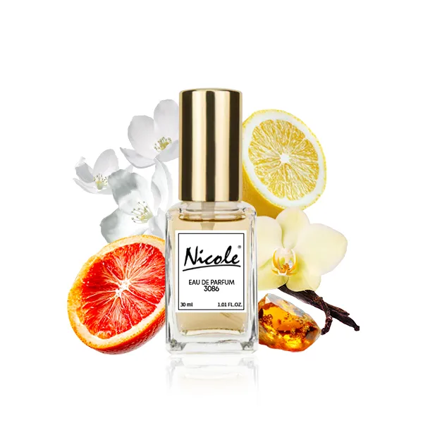 Nicole 3086 należy do kategorii zapachów owocowo-orientalnych. To zmysłowa kompozycja, która łączy świeżość cytrusów z bogactwem słodkich owoców i ciepłem orientalnych nut, tworząc aurę luksusu i elegancji. Otwarcie zapachu emanuje nutami sycylijskiej pomarańczy, kalabryjskiej bergamotki i sycylijskiej cytryny, wprowadzając w świat pełen energii i świeżości. Serce kompozycji skrywa aromatyczne nuty owocowe, oddając esencję soczystości i słodyczy. Baza z białego piżma, ambry i wanilii z Madagaskaru nadaje zapachowi głębi i trwałości, tworząc wyrafinowaną aurę. Nicole 3086 to zapach dla osób poszukujących unikalnych, intensywnych doznań olfaktorycznych, które pozostają w pamięci na długo.